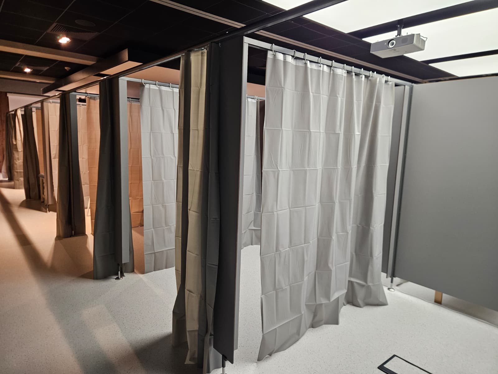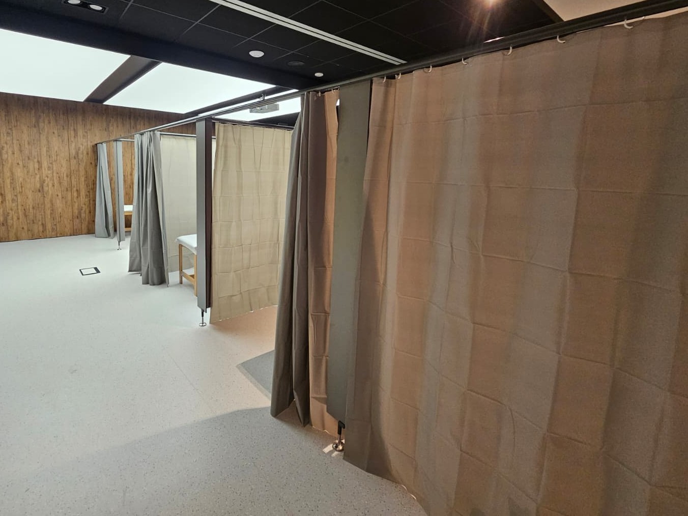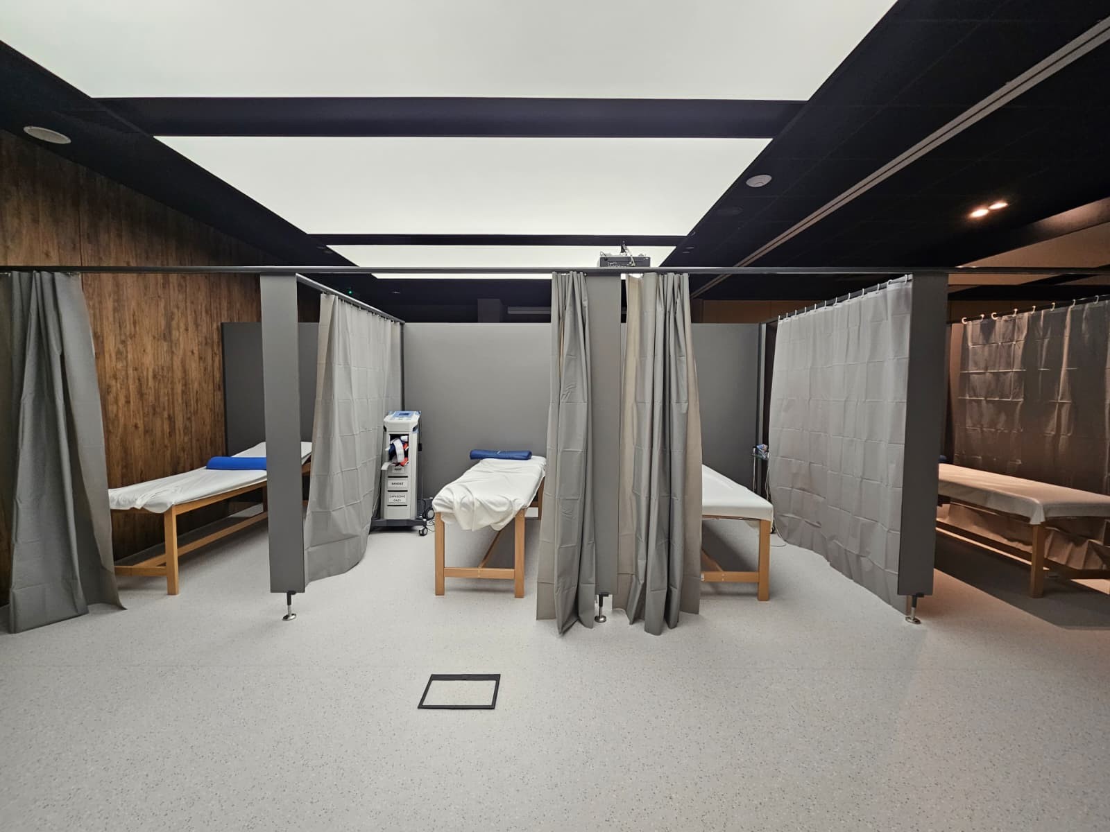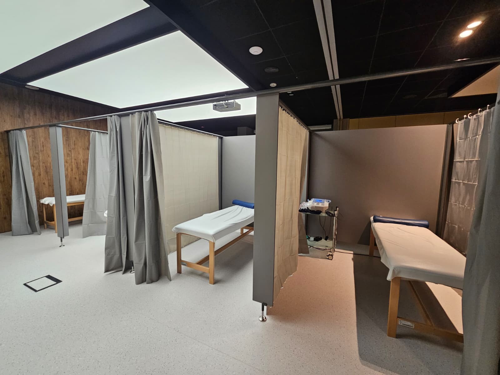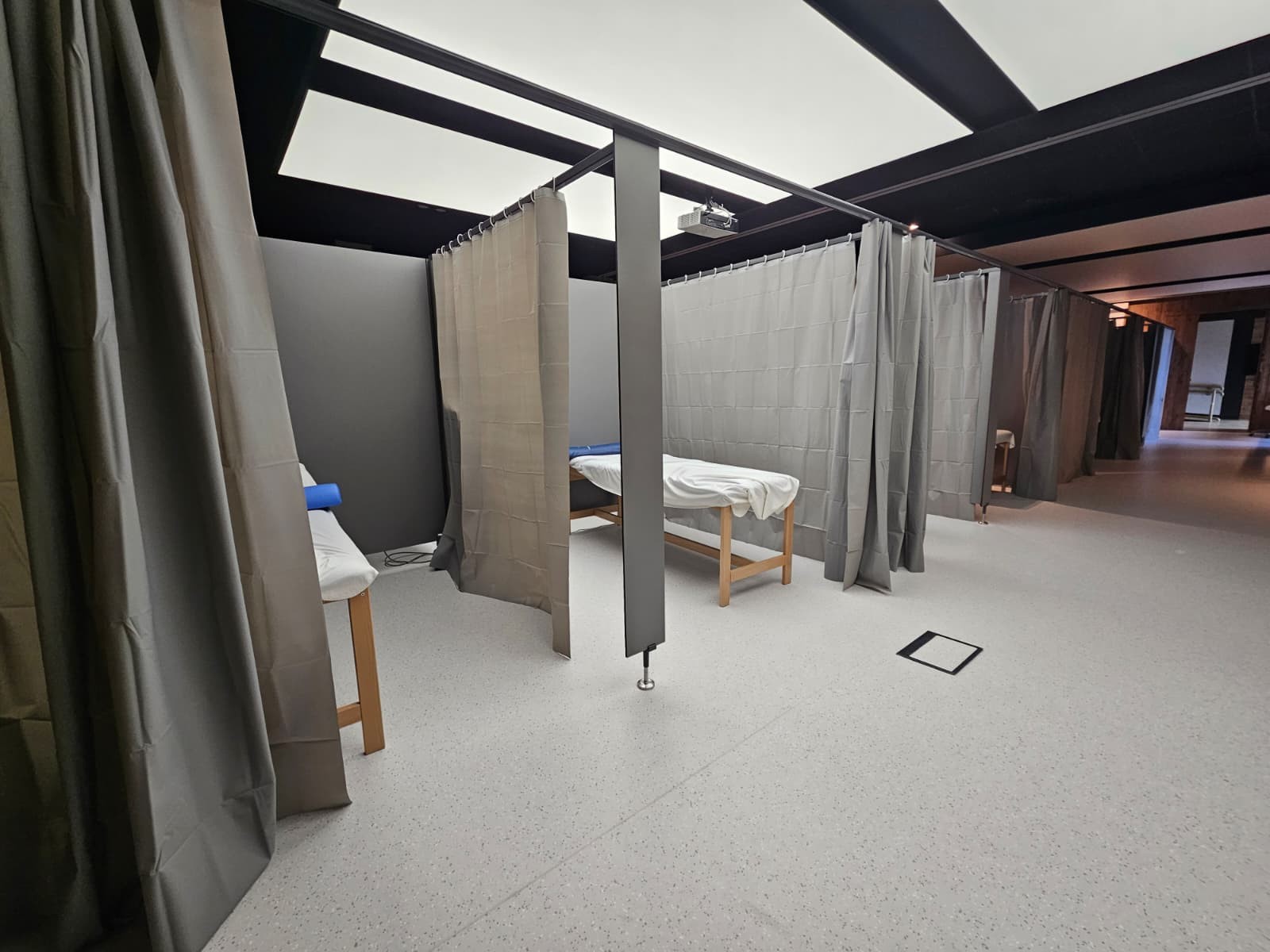 W połączeniu z zasłonami tworzą funkcjonalne i estetyczne stanowiska ćwiczeniowe, oferujące pacjentom odpowiedni komfort i poczucie prywatności.