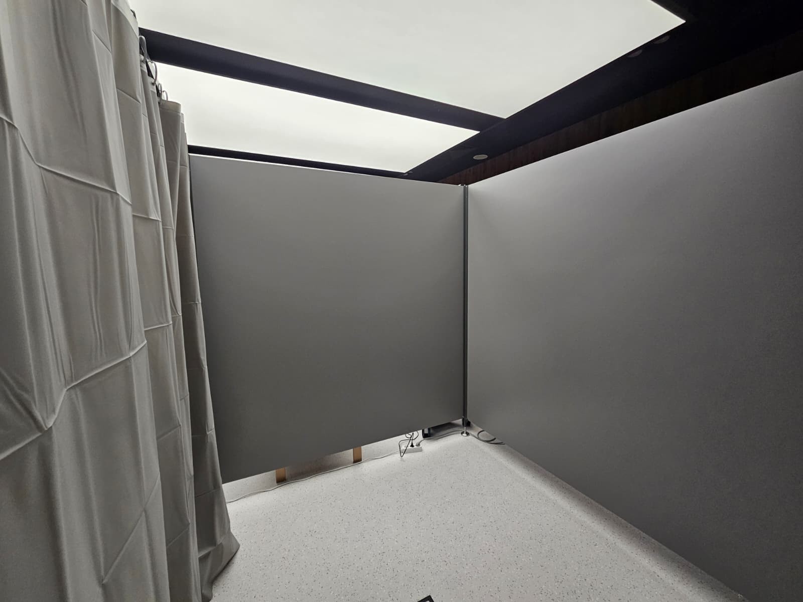 Zadaniem ATJ System było stworzenie eleganckich i wytrzymałych ścianek, które podzielą dużą przestrzeń na komfortowe i odizolowane stanowiska rehabilitacyjne. Całość wykonaliśmy z laminatu HPL w kolorze grafitowym, który idealnie wpisał się w stonowany, profesjonalny i nowoczesny wystrój całego centrum.