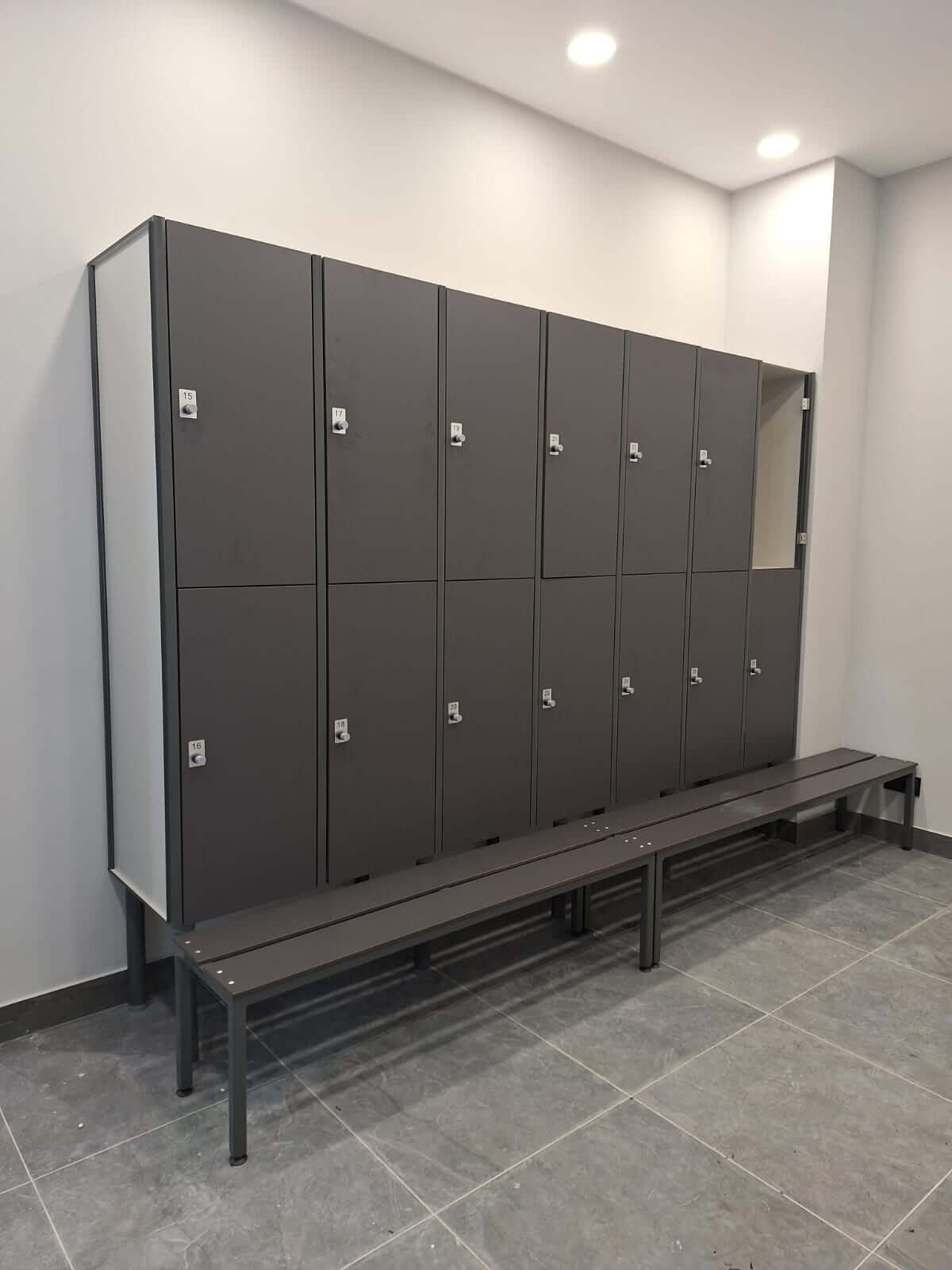 Oferujemy szafki z wodoodpornych płyt HPL, dostosowane do różnych pomieszczeń i szatni.